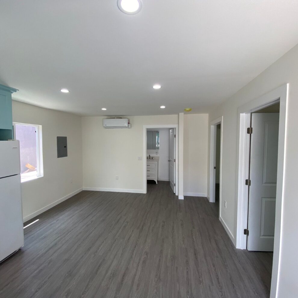 This project was done in the beautiful back of a home in Granada Hills, CA. The owner wanted something quaint yet functional. With plenty of space, this spacious ADU has two bedrooms, a full bath, a top-of-the-line kitchen with tons of storage, and an open living room design all in a 600 sq. ft package. In addition, the ADU increased the property value by $200,000!