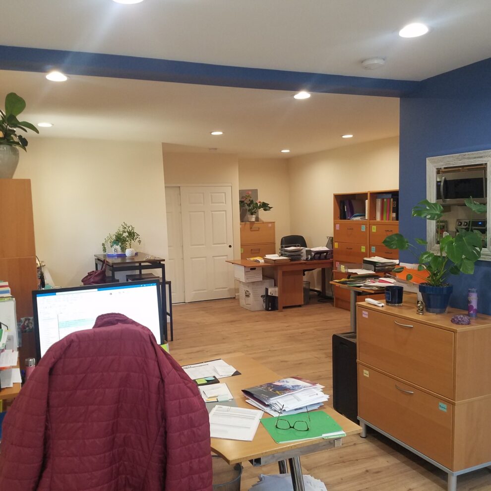 After consulting with the client, we suggested that we add additional square footage to the garage and create an open layout office. Using the existing 400 sq. ft, we added another 175 sq. ft and created a highly functional office space with tons of storage, a kitchen, a visitor’s area, and a full bathroom. The client could not have been happier!