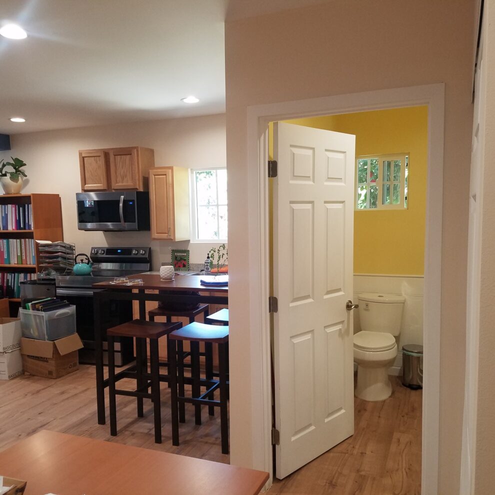 The owner of this ADU is a successful business owner. She needed extra space due to her growing business. Rather than spending tons of money on renting an office, she opted to convert her own garage into her dream office.